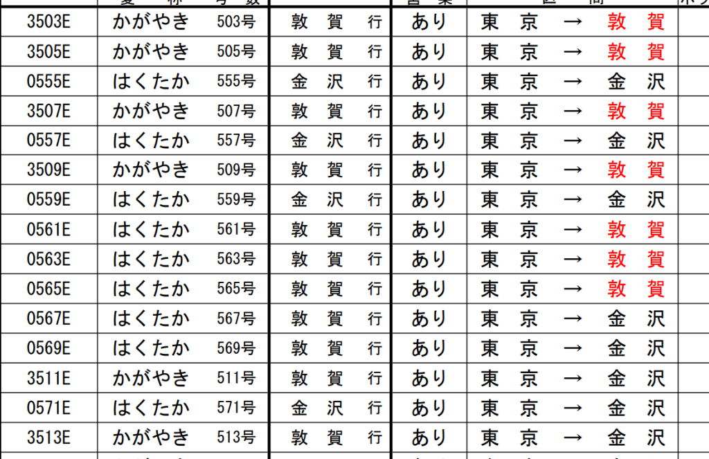 北陸新幹線はくたか・かがやき号